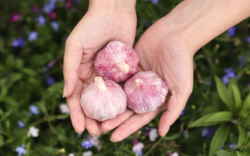 Убирать чеснок лучше утром или вечером, чтобы не увядал на сильной жаре. Нельзя сразу обрезать листья: за счёт оттока ассимилятов из листьев масса и качество луковиц улучшаются.