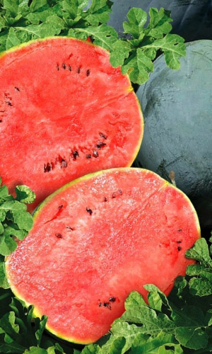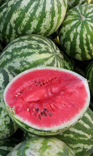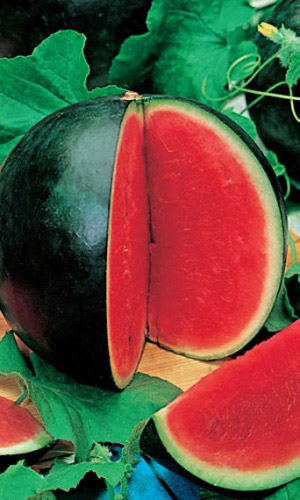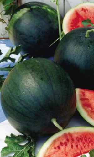 Ультраскороспелый популярный сорт, прекрасно плодоносящий даже в северных регионах России. Плоды округлые, тёмно-зелёные, с едва заметными тёмными полосами, массой 2,5-4,5 кг. Мякоть зернистая, красно-малиновая, очень сладкая и сочная, с мелкими семенами. Ценность сорта:...