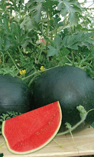 Самый высокоурожайный и высокотоварный гибрид. За счёт крупных, качественных и очень вкусных плодов обладает усиленной транспортабельностью и неприхотливостью к условиям выращивания. Плоды округло-овальные, массой 8-10 кг, выравненные. Мякоть ярко-красная, нежная, с очень высоким содержанием сахара. Мощная сила роста и «агрессивная» корневая система обеспечивают высокую урожайность, а крупные листья хорошо защищают плоды от перегрева...