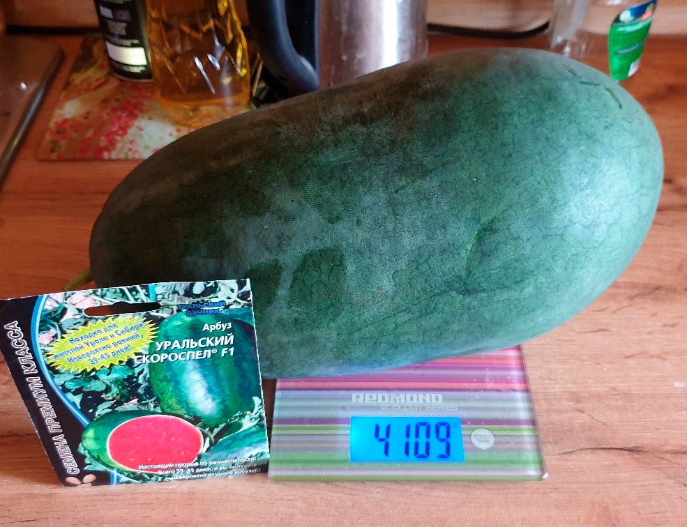 Раннеспелый сорт, от всходов до созревания плодов 80-90 дней, для открытого и защищённого грунта. Плоды округлые, зелёные с тёмными полосками, массой 4-6 кг и более. Кора плотная. Мякоть красно-малиновая, сочная, сладкая, сахаристость 12%.Ценность сорта: устойчивость к заболеваниям, выравненность плодов, транспортабельность, пригодность для длительного хранения. Рекомендуется для употребления в свежем виде, приготовления цукатов, арбузного мёда...