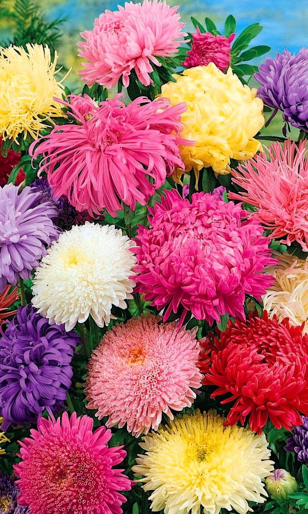 Самые ранние букеты из астр. Растение высотой 30-45 см, компактное, сильноветвистое, стебли крепкие. Соцветия махровые, диаметром 4-6 см, разнообразной окраски. Используют очень широко: для посадки в сборные цветники группами, на рабатки – рядами и на срезку...
