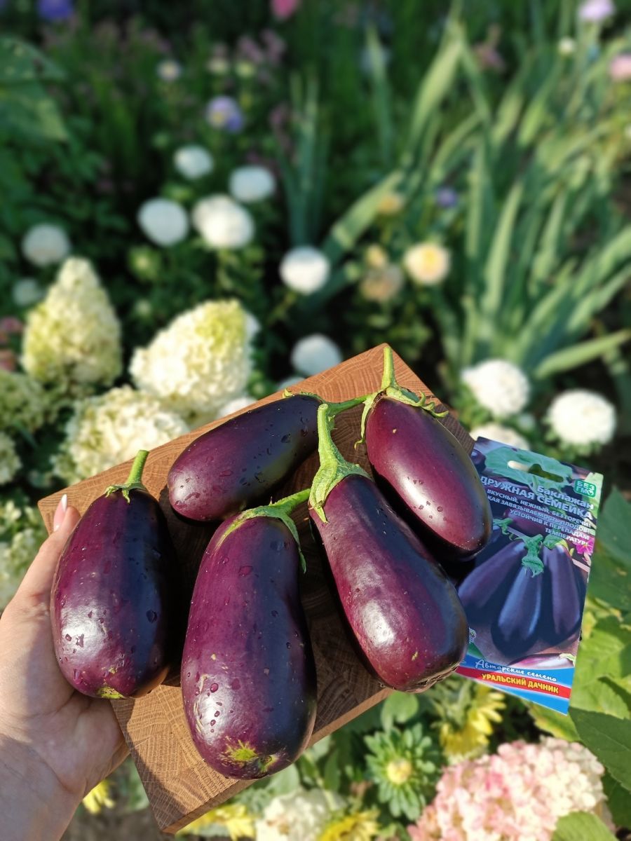 Кто не любит баклажаны? Баклажаны любят все! Особенно, когда они вкусно приготовлены или законсервированы. Но, как вы наверняка замечали, далеко не любой «синенький» годится для этого: то горечь проступает, то семян в плоде больше, чем мякоти... И сейчас, пожалуйста, бурные аплодисменты!.. Встречайте – ДРУЖНАЯ СЕМЕЙКА! Это чудо-сорт, плоды которого идеальны по всем параметрам, поэтому восхитительны и в жарке, и в заготовках (особенно волшебной получается икра!), от вкуса которых ваши домашние будут, как говорится, пищать! Причём готовить баклажанные деликатесы вы сможете уже с конца июня –начала июля: сорт ультраранний, плоды достигают технической спелости через 90-100 дней после всходов.