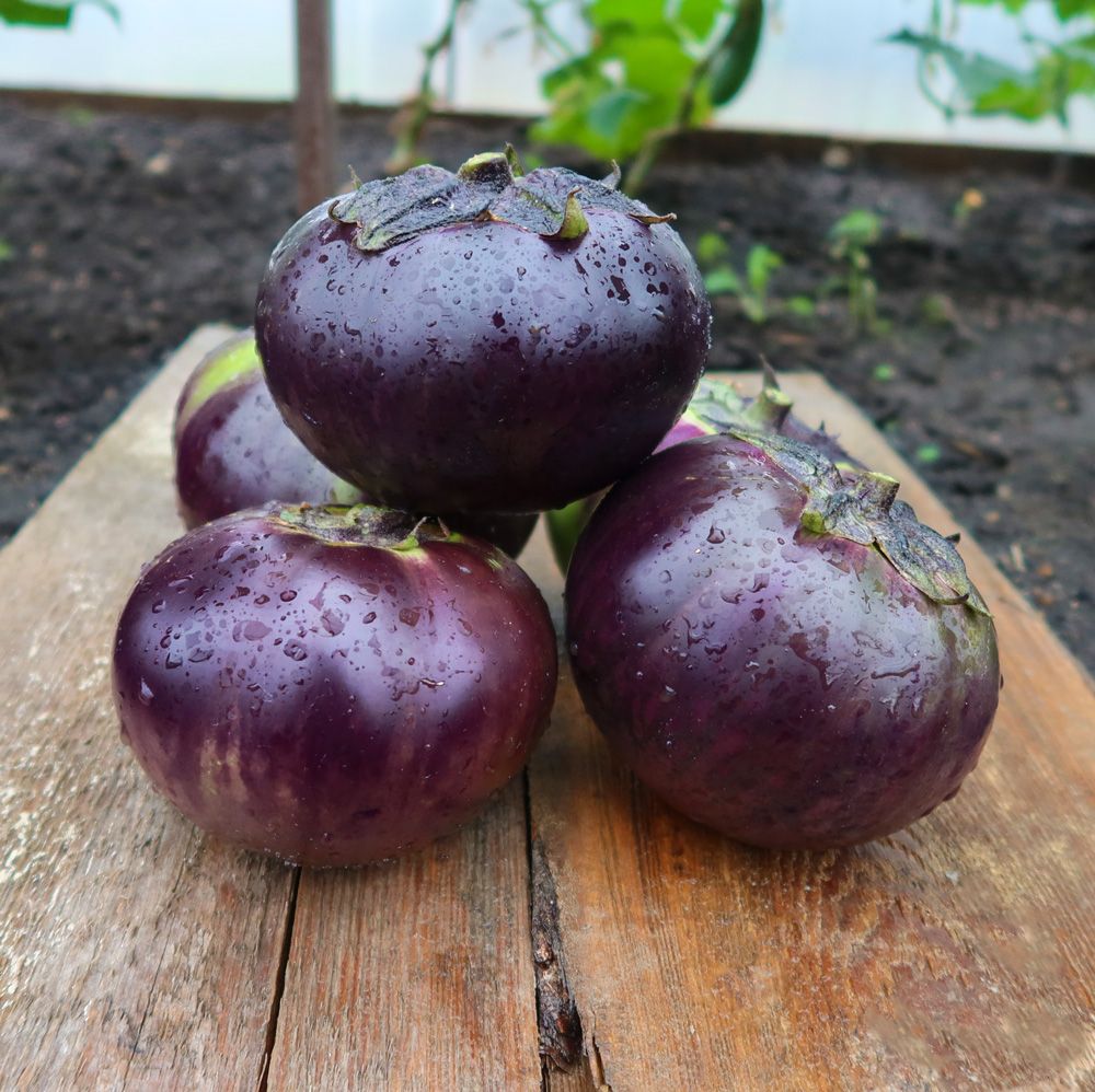 Высокоурожайный, среднеранний сорт для закрытого и открытого грунта. Плоды фиолетовые, шаровидной формы, плотные, массой 600-700 г, с белой, плотной, нежной мякотью, без горечи, высоких вкусовых качеств.