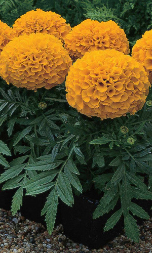 Обильно цветущие, высокорослые бархатцы, с яркими, махровыми, золотисто-жёлтыми соцветиями, станут великолепным украшением любой цветочной композиции в вашем саду. Срезанные цветы долго стоят в воде (13-15 дней).Используют в цветниках, бордюрах, для оформления балконов,...
