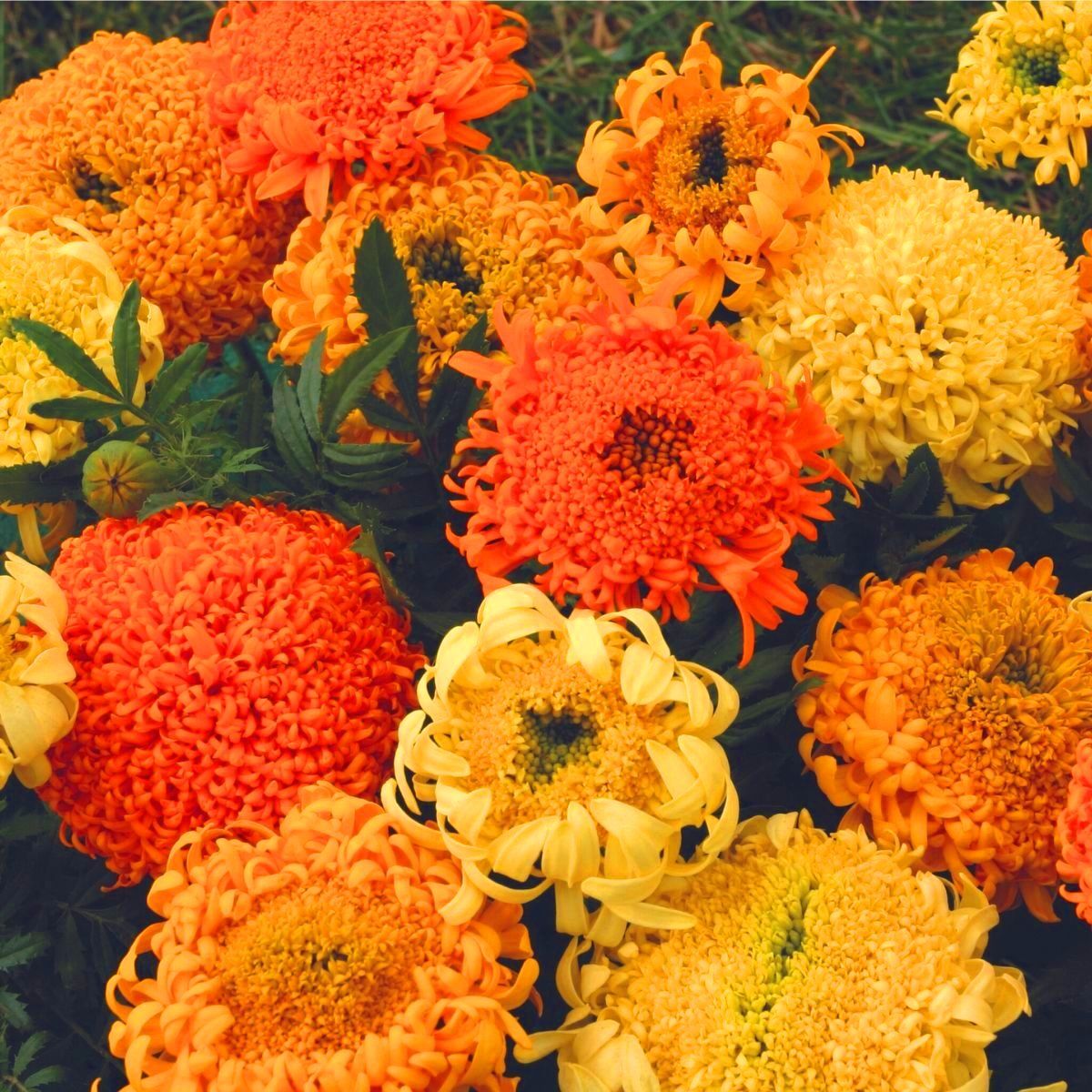 ОднолетнееОригинальная смесь бархатцев с изумительной формой и окраской крупных (диаметром 9-11 см), густомахровых соцветий. Кусты мощные, ветвистые, высотой до 80 см, с крепкими цветоносами, стойко переносят непогоду, не теряя своей декоративности. Цветение очень раннее, обильное и продолжительное. Эффектная смесь используется в клумбах, цветниках, подходит для срезки.