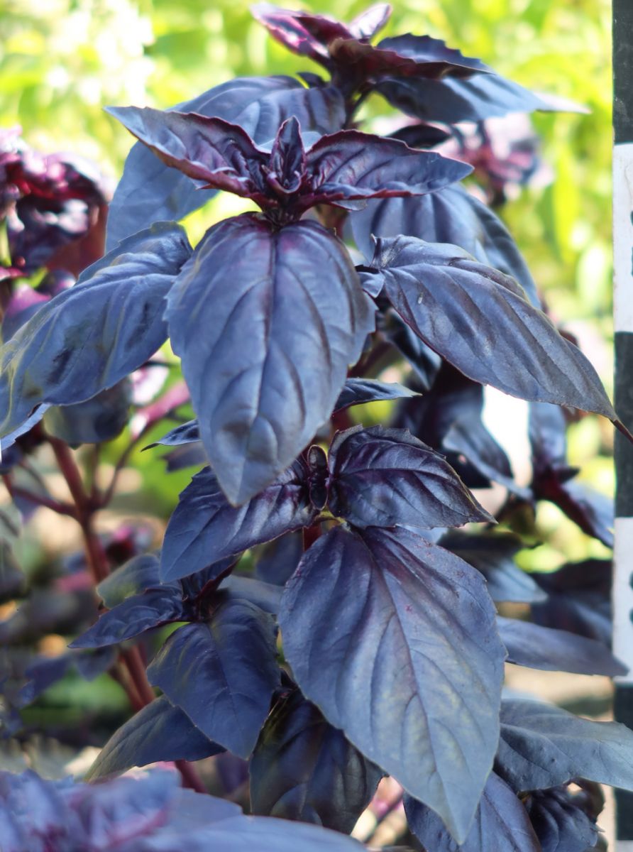 Растение компактное, образует пышные декоративные кустики массой 200-300 грамм. Листья яйцевидные, крупные, яркие, мясистые, длиной 6-8 см, высоко-ароматные. Используются как пряная приправа для салатов и мясных блюд, хороши для приготовления маринадов, душистых соусов, оригинальных компотов, морсов, сушки на зиму. Антоцианы, содержащиеся в листьях тёмного базилика, обладают высокой антиоксидантной активностью и лечебно-профилактическим действием на организм человека.