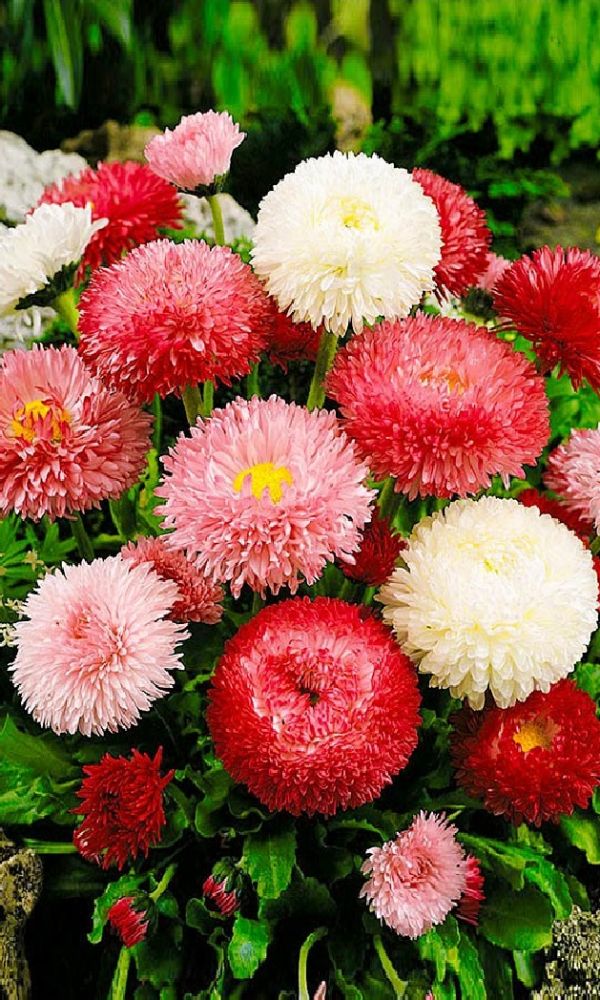 Удивительная смесь маргариток с густомахровыми ярко-розовыми, белыми и красными шапками на крепкой ножке. Растение компактное, с большим количеством прочных, неполегающих цветоносов; отличается быстрым ростом и высокой морозоустойчивостью...
