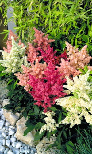 Наиболее популярные сорта. Декоративное растение с перисто-рассеченными блестящими листьями, высотой 75-90 см. Цветки очень мелкие, собраны в густые разветвленные изящные кисти длиной до 20-30 см. Используют для цветочных групп, рабаток, в миксбордерах и на срезку.