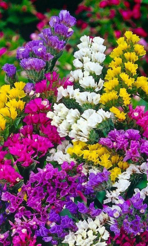 Одно из самых популярных растений для зимних букетов. Листья собраны в большую плотную розетку. Мелкие цветки собраны в щитковидные соцветия, разнообразную окраску которым придают жесткие чашечки, окрашенные в жёлтые, белые, розовые, голубые, сиреневые цвета. Цветёт с...