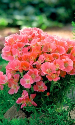 Цветок до 5 смЯркое, солнечное, очень обильное цветение! Растение высотой 40 см. Крупные цветы с волнистыми краями лепестков, лососево-оранжевые. Цветёт обильно с июля по октябрь. Используют для переднего края бордюров, рабаток, клумб.
