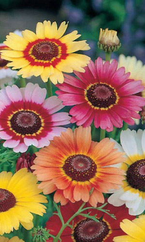 ОднолетнееГустоветвистое, прямостоячее растение, высотой 60 см. Соцветия - корзинки, немахровые, душистые, довольно крупные, имеют чёткие разноцветные круги вокруг тёмной середины.