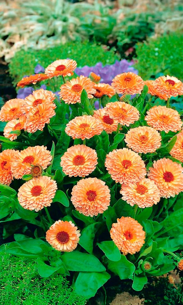 ОднолетнееНеприхотливое декоративное растение с изящными цветками. Куст вырастает до 60 см. Его цветоносы довольно длинные. Язычковые цветки плоские, направлены вверх. Соцветия окрашены в лососево-оранжевый цвет.