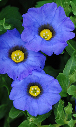 ОднолетнееЭто настоящее сокровище для оформления сада. Густооблиственные стебли образуют сплошной коврик высотой 10 см и диаметром до 70 см. Листья тёмно-зелёные. Над ними на длинных цветоножках приподнимаются крупные цветки, имеющие форму колокольчика. Диаметр цветков до 4 см. Цветёт обильно и продолжительно с середины июня и до заморозков. Нолана прекрасно подходит для использования в качестве почвопокровного, контейнерного и ампельного растения в кадках и подвесных кашпо.