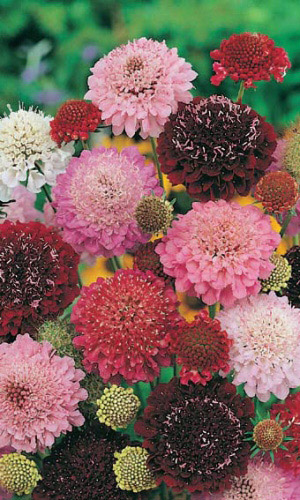 ОднолетнееИзящное растение с красивыми, разрезными листьями. Соцветия тёмно-пурпурные, лиловые, белые, розовые, сиреневые, красные, тёмно-вишневые, махровые, на длинных, прочных цветоносах. Даже после цветения растения не теряют своей декоративности. Используют в группах, рабатках, миксбордерах, на срезку.