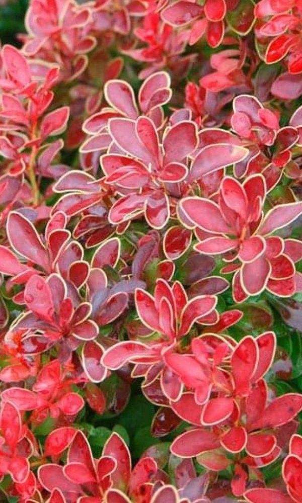 Барбарис Тунберга сорта Адмирейшн выделяется своей декоративностью и компактностью. Это компактный кустарник, который вырастает до 55 сантиметров в высоту и достигает 90 сантиметров в диаметре. Вначале его крона невелика и имеет сферическую форму, но со временем растение становится более раскидистым. Листья барбариса Адмирейшн имеют красивую коралловую окраску с жёлтой каймой по краям. Цветение происходит в конце весны, когда на кусте распускаются нежно-розовые цветы, которые затем сменяются яркими красными плодами. Важно отметить, что плоды этого сорта быстро опадают и не остаются на кусте всю зиму, в отличие от других декоративных сортов барбариса.