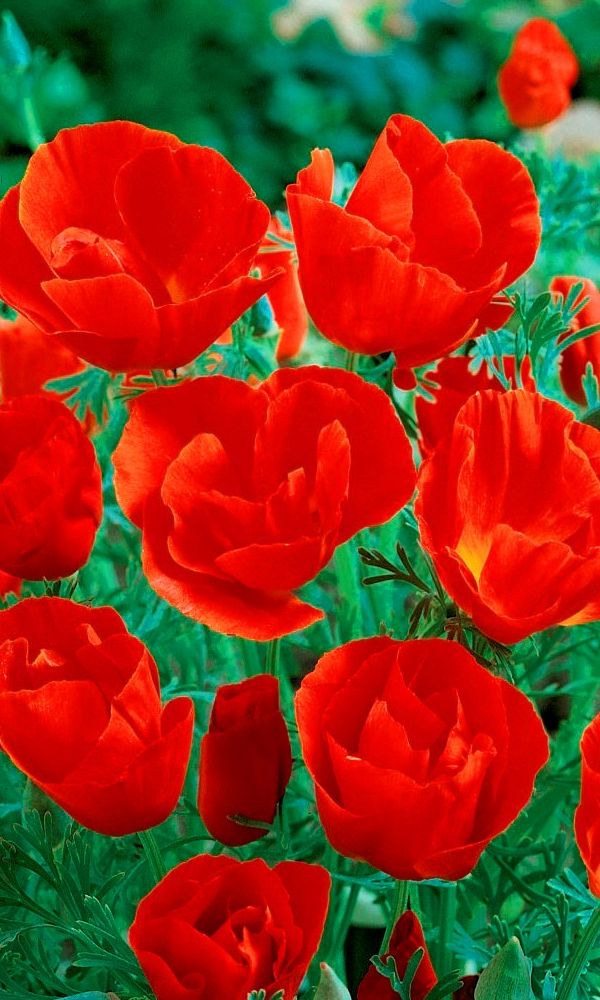 Необыкновенно яркая красная окраска и бархатный оттенок цветков этой эшшольции привносит в цветники радостное настроение и служит прекрасным украшением клумб и миксбордеров. Цветы в изобилии открываются только в ясную, солнечную погоду, наполняя сад теплом и светом...