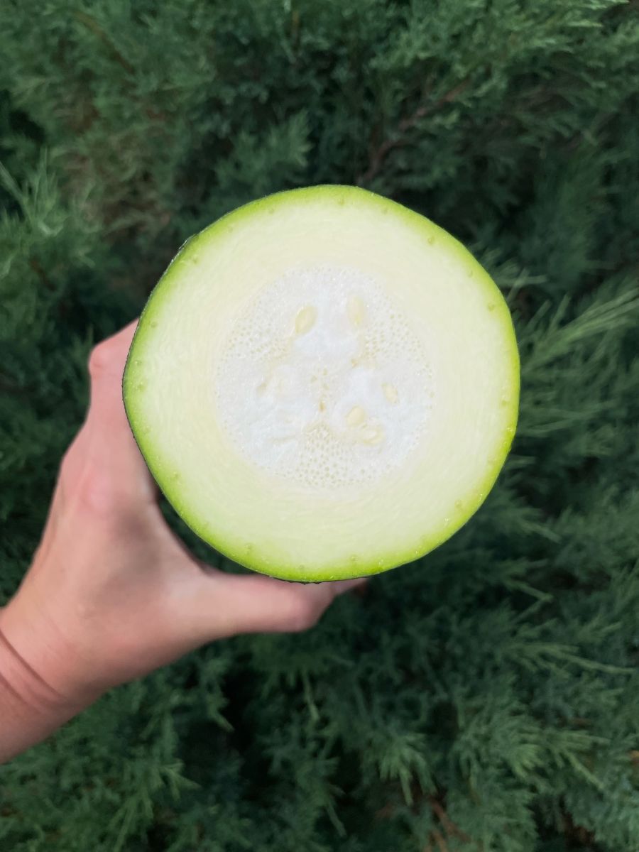 Раннеспелый, высокоурожайный, кустовой сорт. Плоды цилиндрической формы, выровненные, тёмно-зелёные, гладкие, глянцевые, массой до 1,2 кг. Мякоть белая, плотная, нежная, сочная.Ценность сорта: раннее и дружное и обильное формирование урожая, высокие вкусовые качества плодов. Рекомендуется для кулинарной переработки и консервирования...