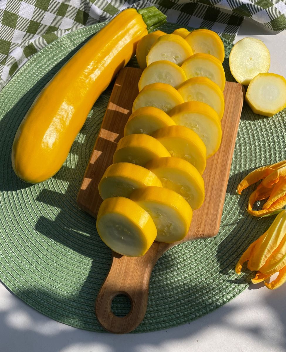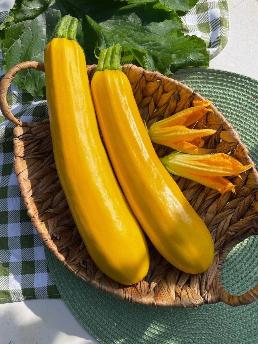 Раннеспелый суперурожайный кустовой гибрид. Плоды цилиндрические, солнечно-жёлтые, гладкие, глянцевые, длиной до 30 см, нежные, очень сочные.