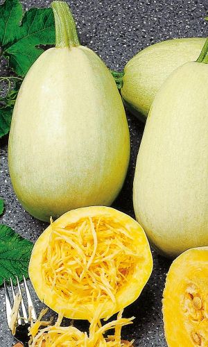 Позднеспелый (95-100 дней) кустовой сорт, тип спагетти, универсального использования. Плоды удлинённо-овальные, массой 1-1,5 кг. Мякоть жёлтая, мелкозернистая, толщиной 2,5 см, вкусная, при варке распадается на «макароны». Когда плоды светло-зелёные, их используют в кулинарии,...