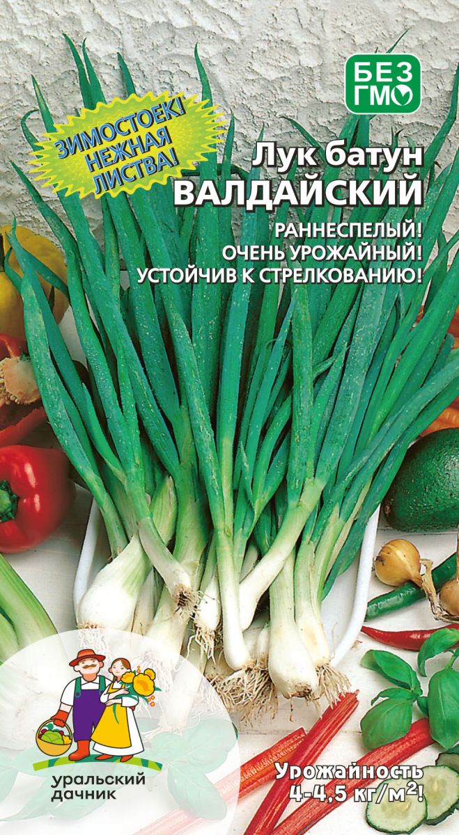 Многолетник. Раннеспелый, высокоурожайный, салатный сорт. Растение средней высоты. Листья прямостоячие, зелёные, со слабым восковым налётом, длиной 36 см, нежные, сочные, полуострого вкуса. На одном месте растет до 4-6 лет.