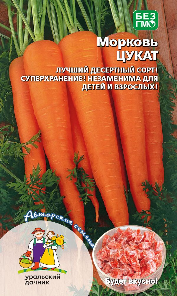 Перспективный сорт с превосходным вкусом и высокой урожайностью – 6-8 кг/м2. Среднеспелый, формирует урожай за 100-110 дней от всходов. Корнеплоды нантского сортотипа, массой 110-170 г, с высоким содержанием сахаров и каротина. Поверхность гладкая. Сорт идеален для детского питания, подходит для длительного хранения...
