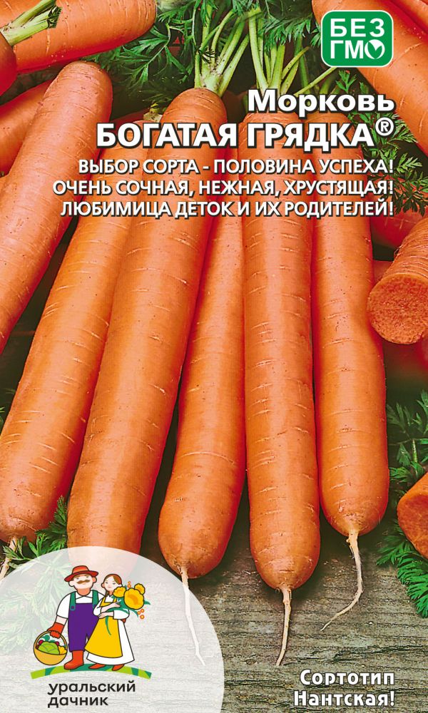 Урожайный среднеспелый (от полных всходов до технической спелости 105-108 дней) сорт, отлично подходящий для длительного хранения и потребления в свежем виде. Сортотип Нантская. Цилиндрические корнеплоды средней длины с тупыми кончиками, массой 90-100 г. Мякоть и кора оранжевого цвета. Плоды сочные, сладкие и полезные.Большое содержание полезных веществ и возможность длительного хранения, позволят наслаждаться здоровым и вкусным лакомством в зимний и осенний период. Урожайность 5,7-8,9кг/м2...