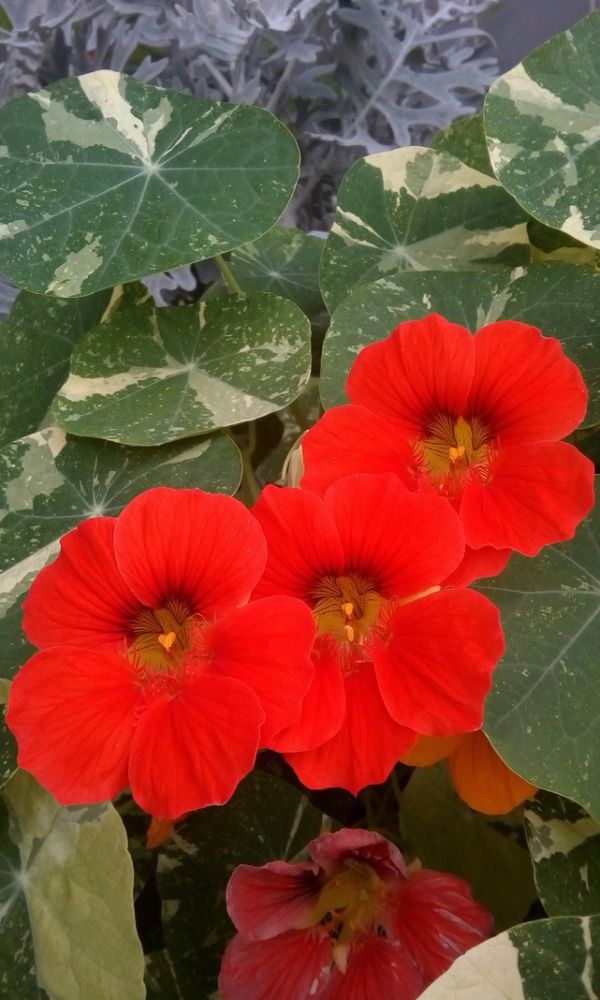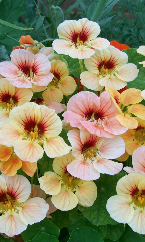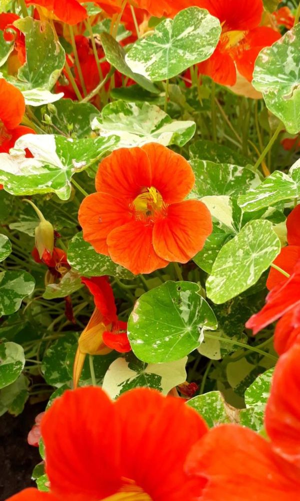 Смесь окрасок с пестрой мраморной листвой. Полустелющиеся побеги длиной до 2 м. Листья светло-зеленые с белым мраморным рисунком. Цветы бело-желтые, лимонные, оранжевые, красные. Цветет обильно с июня до заморозков. Используют для вертикального озеленения и как...