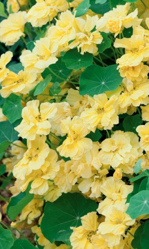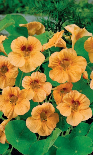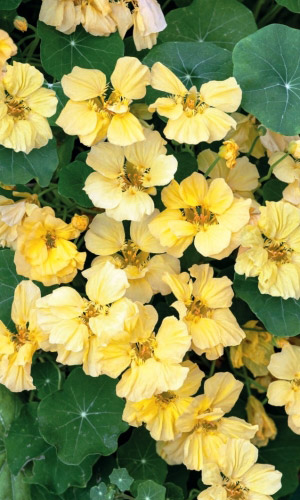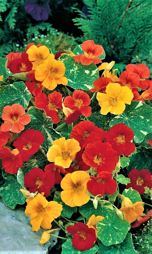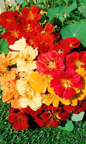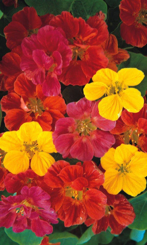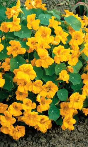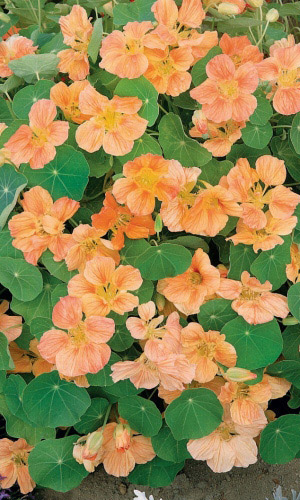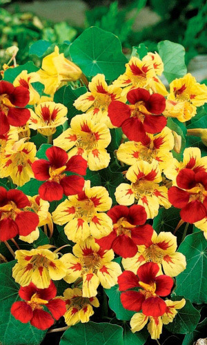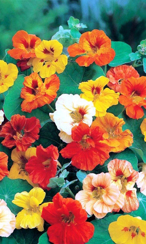 Превосходная смесь для бордюров. Кустик компактный, прямостоячий, высотой до 30-40 см. Листья округлые, ярко-зелёные. Цветы крупные, золотисто-жёлтые, красные, кремовые, оранжевые, расположены поверх листьев. Цветёт обильно с июля по октябрь.Семена высевают в середине мая...