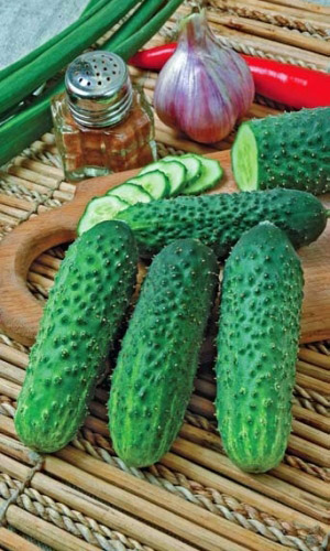 Среднеранний сорт с потрясающей урожайностью, преимущественно женского типа цветения для выращивания в открытом грунте и под плёночными укрытиями. Плоды цилиндрической формы, выровненные, среднебугорчатые, черношипые, длиной 12-14 см, сладкие, сочные, хрустящие, без горечи, не желтеют. Ценность сорта: высокая урожайность, отличные вкусовые качества, устойчивость к заболеваниям, длительный период плодоношения. Рекомендуется для свежих салатов, засолки и консервирования...