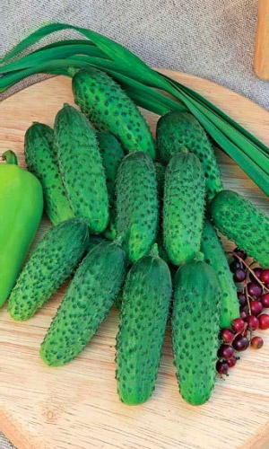 Раннеспелый, пчёлоопыляемый сорт. Предназначен для выращивания в открытом грунте и под временными плёночными укрытиями. Растения преимущественно женского типа цветения, устойчивы к настоящей и ложной мучнистой росе. Зеленцы короткие, веретеновидные, крупнобугорчатые, черношипые, длиной 8-9 см и массой 60-80 г. Плоды отличного вкуса, без горечи, плотные, хрустящие. Из них получаются несравненные малосольные, солёные и консервированные огурчики. Урожайность – 3-4 кг/м2...