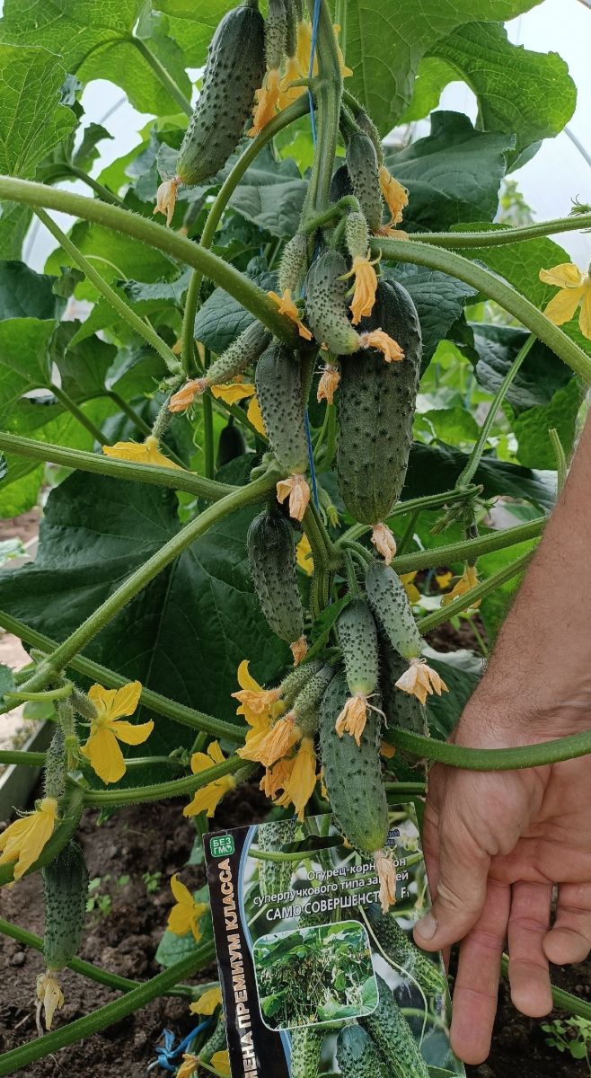Высокоурожайный, ультраскороспелый гибрид, который легко формируется в условиях теплицы. Склонен к партенокарпии. Огурчики тёмно-зелёные, бугорчатые, некрупные 11-13 см, изящные и не желтеют. Вкусовые качества отличные, огурчики сочные, без горечи, с насыщенным ароматом...