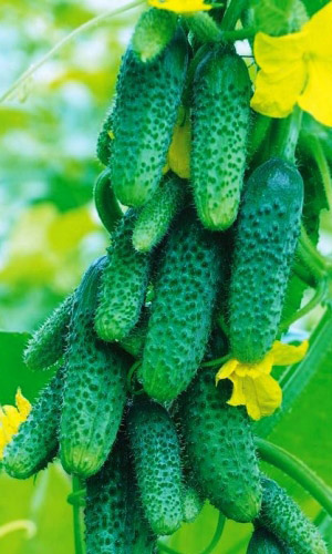 Раннеспелый, партенокарпический, пучковый гибрид женского типа цветения для открытого и закрытого грунта. Плоды цилиндрические, длиной 11-14 см, тёмно-зелёные, белошипые, крупнобугорчатые.Ценность: устойчивость к основным заболеваниям и хорошая адаптируемость к любым условиям выращивания, высокие вкусовые и товарные качества. Рекомендуется для употребления в свежем и консервированном виде...