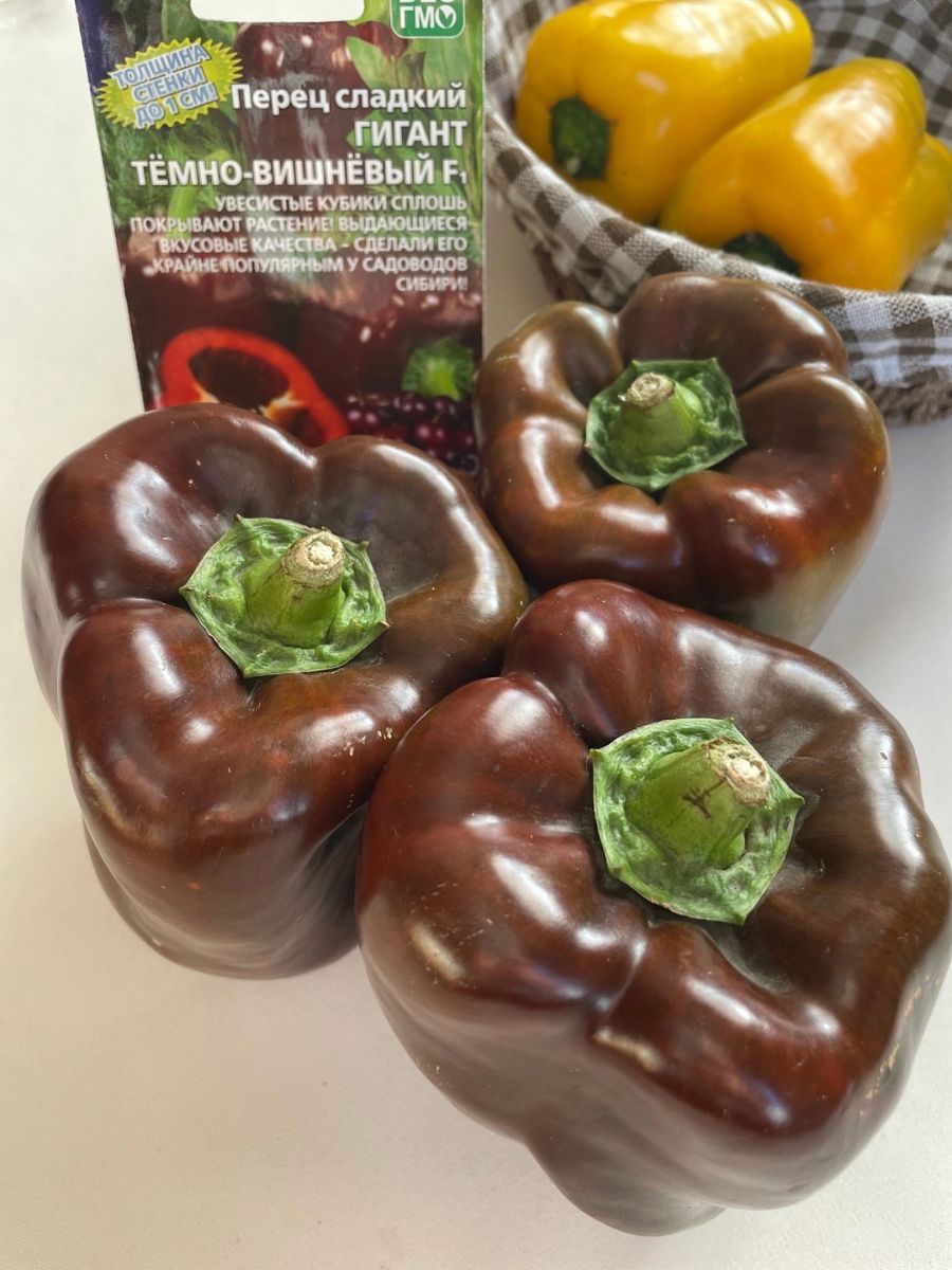 Новый среднеспелый гибрид сладкого перца для выращивания в защищённом грунте. Растение высотой 80-120 см, сильнооблиственное, раскидистое. Плоды кубовидные, вишнёво-шоколадного цвета, 3-4-х камерные, массой до 200 г, с толщиной стенки 7-9 мм. Отличается от других очень сладким вкусом и очень высокой урожайностью. Ценность гибрида: оригинальный внешний вид плодов, стабильно высокая урожайность, отличные вкусовые качества.