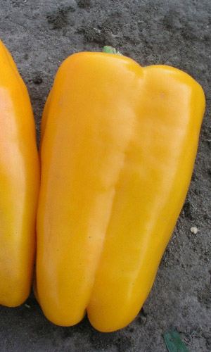 Среднеспелый сорт. Плодоносить начинает через 115-130 дней после появления всходов. Предназначен для выращивания в плёночных теплицах и открытом грунте. Растение высокорослое, раскидистое. Плод конусовидный, глянцевый, слегка ребристый. Окраска в технической спелости светло-зелёная, в биологической - ярко-жёлтая. Масса 160-250 г (до 350 г). Плоды очень крупные, толстостенные. Транспортабельность отличная. Плоды долго сохраняют привлекательный товарный вид. Универсальное использование.