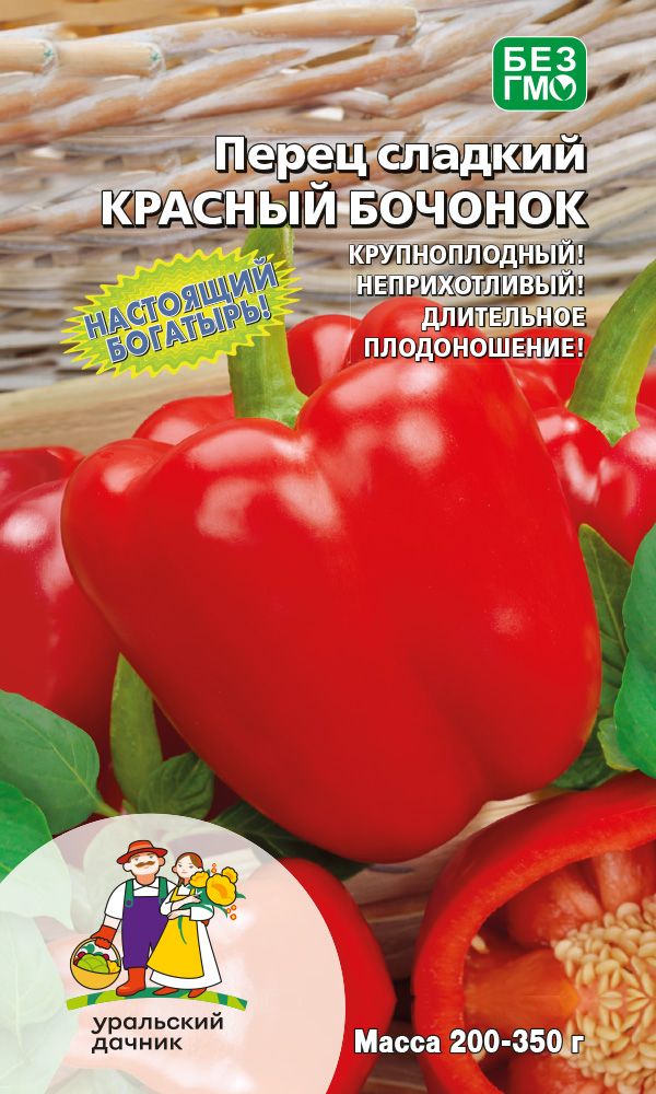 Среднеспелый сорт для открытого грунта и плёночных теплиц. Растение полураскидистое, высота растения в открытом грунте 45-60 см. Плод удлинённо-кубовидный, четырёхгранный, длина до 14-15 см, толщина стенок 6-8 мм. Масса 150 г. Окраска в технической спелости тёмно-зелёная, в биологической - красная. Устойчивый куст позволяет выращивать сорт в открытом грунте без подвязки. Сорт устойчив к вирусу табачной мозаики. Универсальное использование...