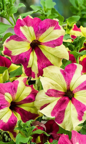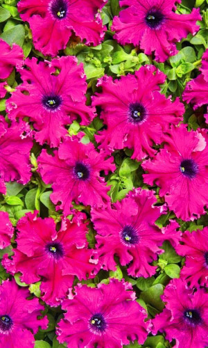 Серия «ЕКС» – характеризуется компактным кустом и махровыми ярко окрашенными гофрированными цветками (диаметр до 10 см), напоминающими махровую гвоздику. Растения отличаются холодо- и ветроустойчивостью. Петуния – относительно неприхотливое и очень пластичное растение. Серия «ЕКС» идеальна для выращивания в корзинах, контейнерах, на клумбах, рабатках и бордюрах...