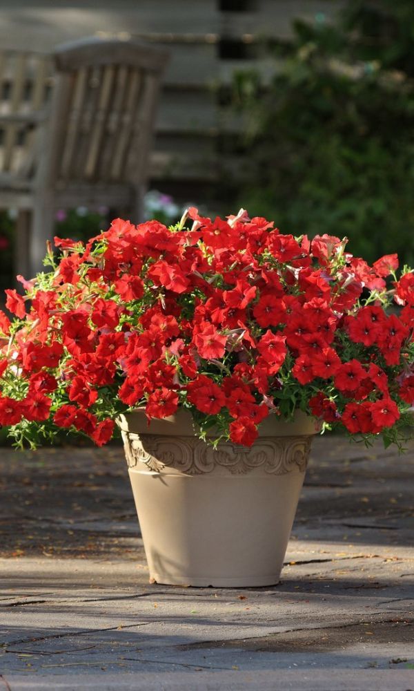 Новая модная группа ампельных петуний! Молодые растения прямостоячие, вырастая, побеги свешиваются и образуют лавину из цветов. Эффектные пурпурно-красные воронковидные цветы с контрастной белой звездой в центре. Цветёт обильно с июня по октябрь. Великолепно подходит...