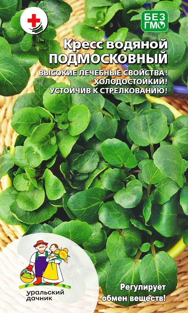 Кресс водяной, он же жируха лекарственная, гулявник, резуха. Раннеспелый сорт. Листья тёмно-зелёные, блестящие, на широких черешках, имеют терпкий горчичный вкус и резкий приятный аромат. В конце весны обильно цветёт мелкими белоснежными цветками, собранными в полузонтики.