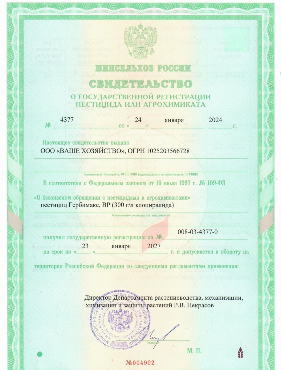 Японский системный гербицид общеистребительного действия, предназначенный для борьбы с однолетними и многолетними злаковыми и двудольными сорняками в виноградниках и фруктовых садах, на картофеле, подсолнечнике, капусте, томатах, на стерне и паровых полях, на землях...