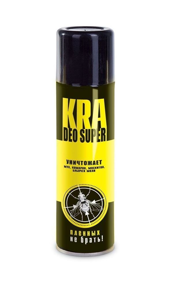 Инсектицидное средство «КРА - део супер Дихлофос» для уничтожения летающих насекомых.Способ применения: перед применением баллон встряхнуть в течение 3 секунд. Перед началом работ закрыть окна, двери, форточки.Для уничтожения мух, комаров и москитов струю аэрозоля...