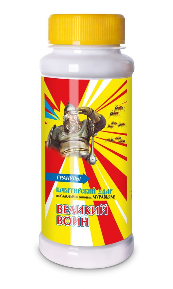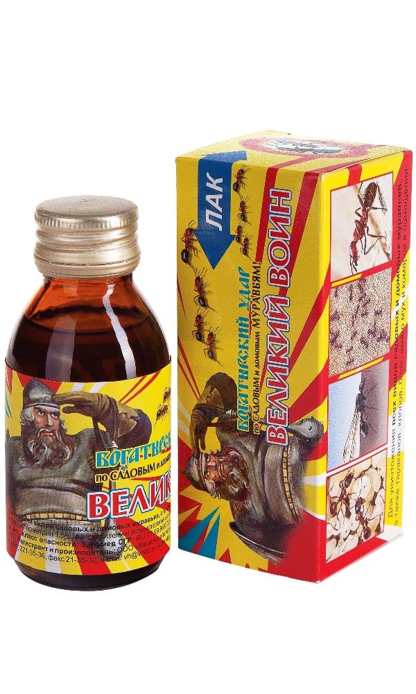 «Великий Воин» лак против садовых и домашних муравьёв.Для уничтожения всех видов садовых и домовых муравьёв, а также тараканов, клопов, блох, имаго мух и комаров в помещении.Эффективно уничтожает муравьёв в теплицах, парниках, хозяйственных постройках.Уничтожает...