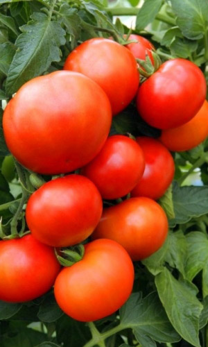 Среднеспелый, высокоурожайный сорт для открытого и закрытого грунта. Растение мощное, высотой 100-120 см. Плоды плоскоокруглой формы, малинового цвета, массой 200-400 г, сочные, мясистые, отменного вкуса. Ценность сорта: крупноплодность, высокая урожайность и товарность плодов, устойчивость к болезням, отличные диетические качества, способность длительно плодоносить. Рекомендуется для употребления в свежем виде, переработки на томатопродукты и консервирования...