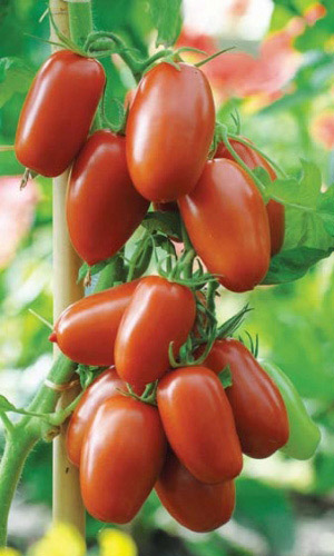 Необычайно урожайный, среднеспелый сорт для открытого и закрытого грунта. Растение штамбовое, высотой 100-130 см. Плоды ярко-красные, глянцевые, сливовидной формы, массой 80-120 г, плотные, без сочленения в плодоножке, долго хранятся на растениях и после уборки.Ценность сорта: очень высокая урожайность, жаростойкость, устойчивость к растрескиванию плодов и комплексу заболеваний. Рекомендуется для потребления в свежем виде, кулинарной переработки и цельноплодного консервирования...