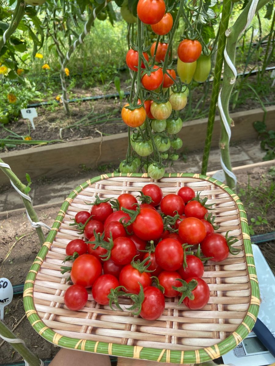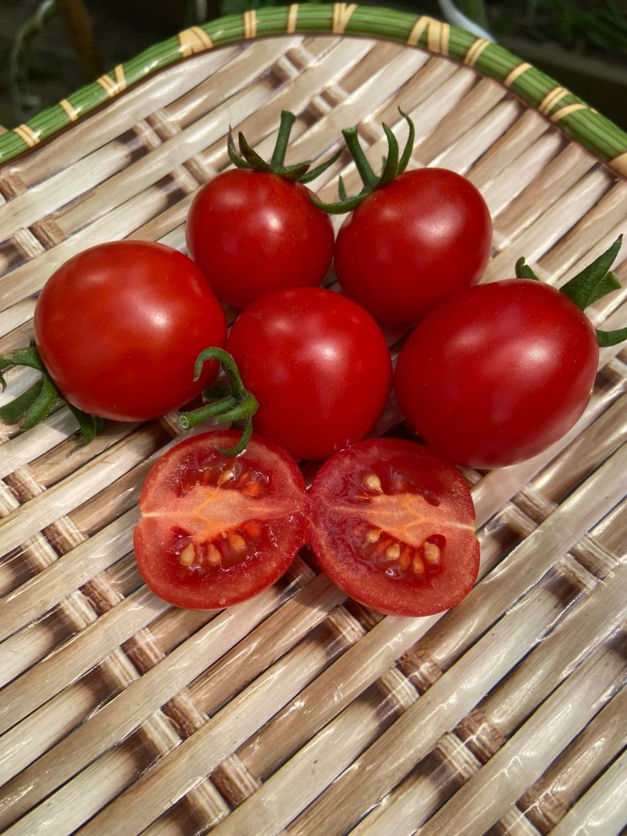 Ультраскороспелый, высокорослый сорт. На кисти одновременно созревает до 30 медовых плодов. Плоды круглые, тип черри, тёмно-красные, массой 15-20 г, с тонкой кожицей и прекрасным вкусом.