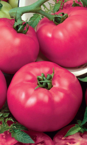 Салатное чудо. Невероятный вкус, крупный размер – 250-450 г. Среднеспелый сорт для плёночных теплиц. Растение высокорослое, требует формирования и подвязки. Плоды плоскоокруглые, ребристые, розового цвета. Для употребления в свежем виде и приготовления соусов.