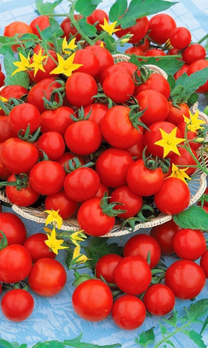 Сверхурожайный раннеспелый сорт для открытого и закрытого грунта. Плоды округлые, красные, массой 15-20 г, плотные, очень сладкие. На каждой кисти формируется до 30 плодов.
