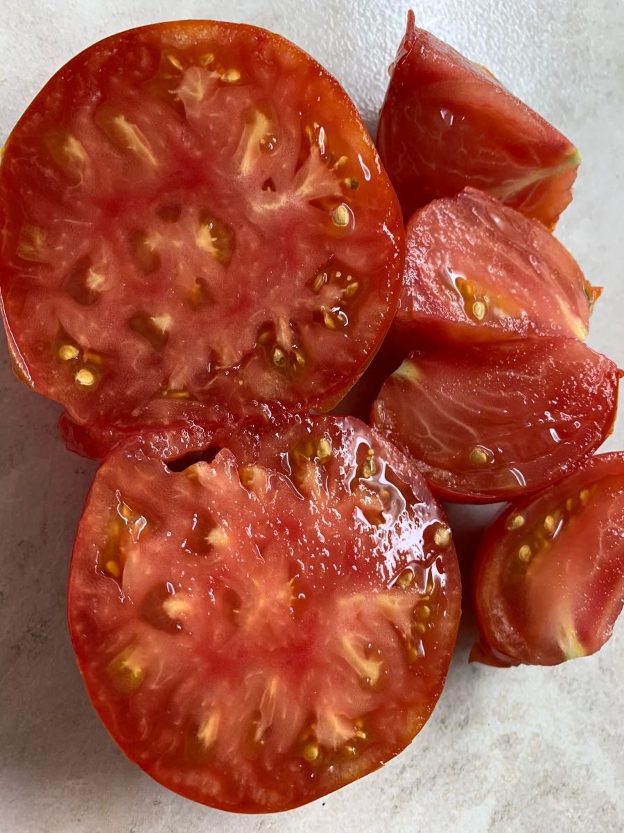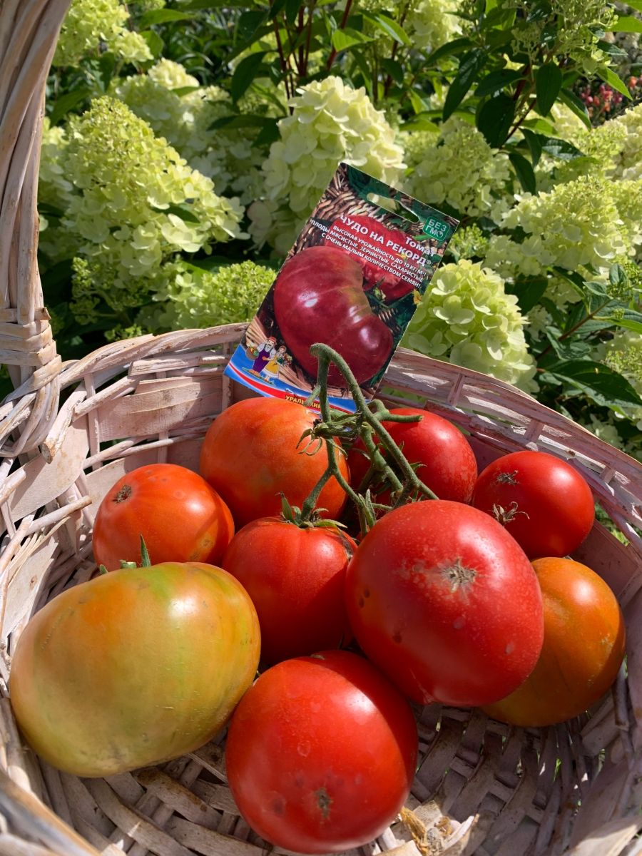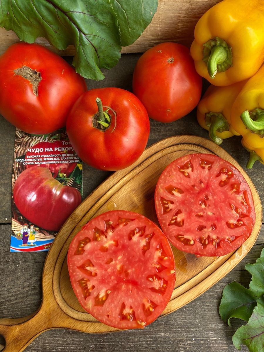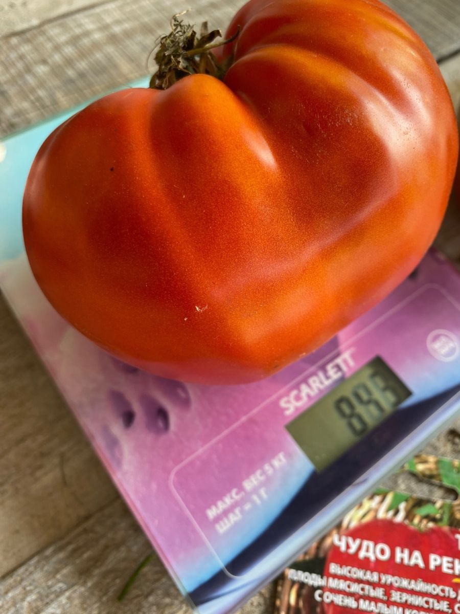 Сорт среднеспелый, светолюбивый, хорошо плодоносит в открытом грунте, не любит теплиц. Растение среднерослое, высотой до 1,5 м. Плоды гладкие, округло-плоские, красно-малинового цвета, плотные, с сахаристой мякотью и малым количеством семян, устойчивые к растрескиванию. Первый урожай из плодов массой 0,5-1 кг собирают до 1 августа. Второй урожай из 20-30 томатов среднего размера-до конца сентября. Урожайность до 10 кг/м2.
