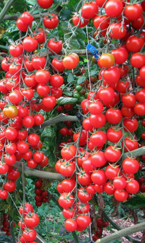 Плоды округлой формы, ярко-красного цвета, массой до 20 г. Особую декоративность растениям придает длинная кисть с 30-40 красными плодами, которые благодаря повышенному содержанию сахара имеют очень сладкий вкус. Схема посадки 40 х 60 см. Урожайность одного растения 1,0-2,0 кг.