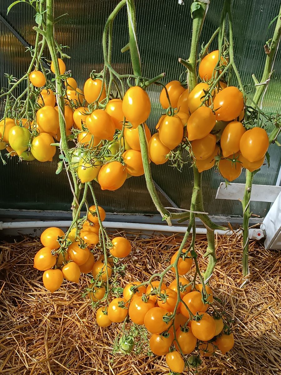 Красота и вкуснотища в теплице будет – неземная! Очень урожайный, среднеспелый сорт для теплиц и парников высотой 2 и более метров. Кисти сложные, в одной кисти 25-30 плодов. Плоды ярко-жёлтые, напоминающие по форме лимончики с «носиком», массой до 100 г. Мякоть сочная, очень ароматная, сладкая, плоды в кисти созревают одновременно, долго не растрескиваются.