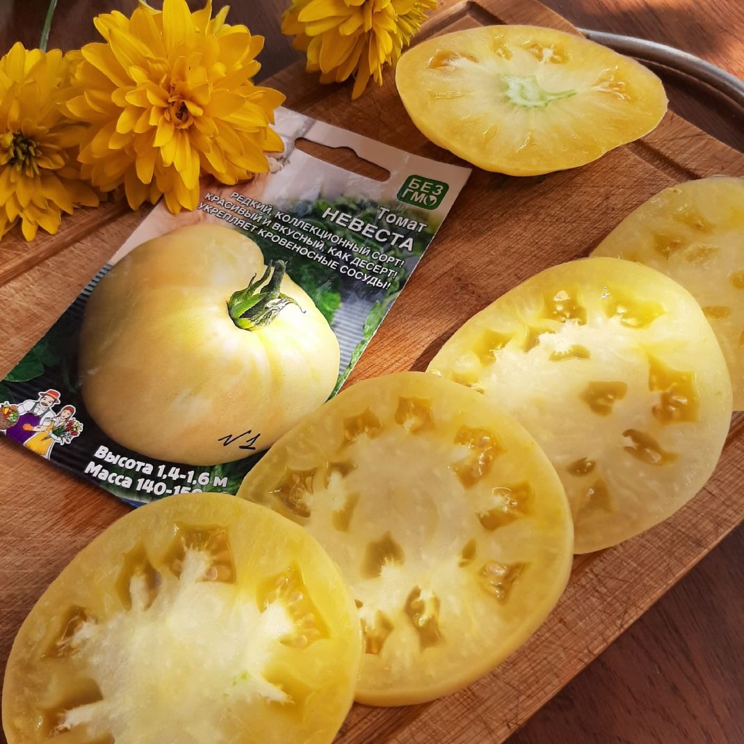 Великолепный, индетерминантный, крупноплодный среднеранний сорт для открытого грунта и плёночных теплиц. Плоды средней массой 150 г, плоско-округлые, среднеребристые, многокамерные. Окраска зрелых плодов напоминает любимое всеми сливочное мороженое. Красивый и вкусный как десерт! Светлый оттенок продуктам придают флавоны – биологически активные вещества, которые укрепляют стенки кровеносных сосудов, усиливают эффект действия аскорбиновой кислоты, успокаивают и расслабляют. Врачи рекомендуют белые томаты людям с расстройствами нервной системы или повышенной агрессивностью.